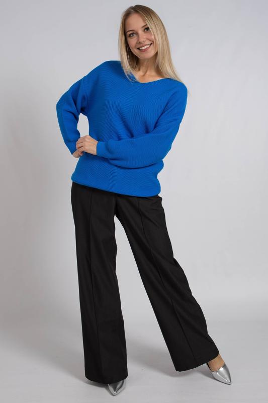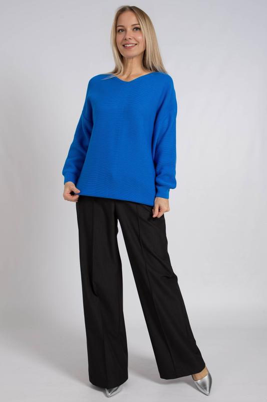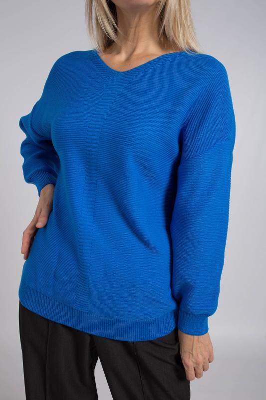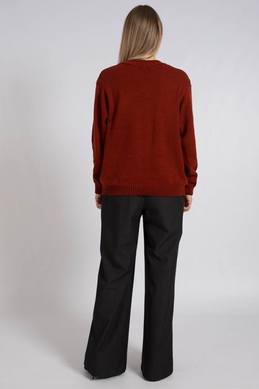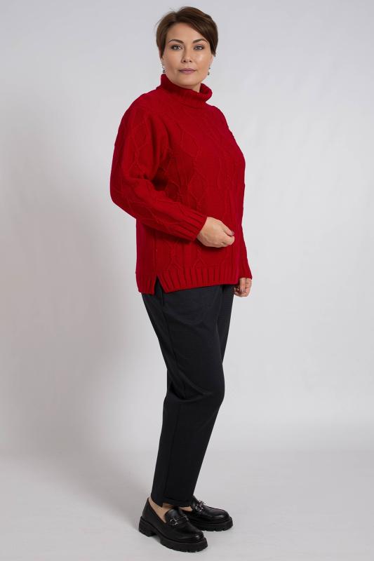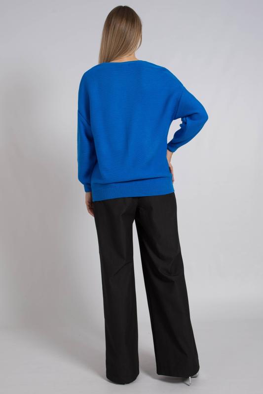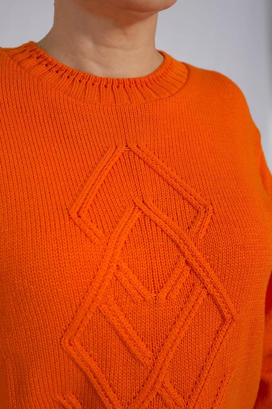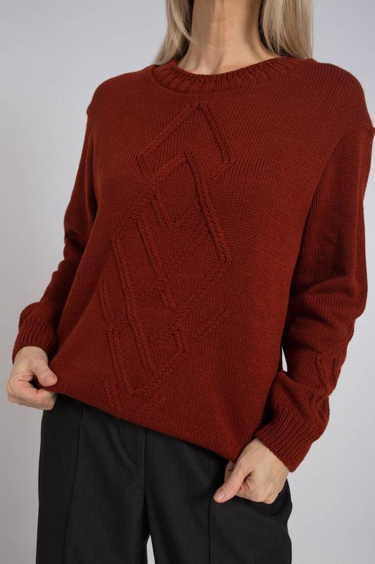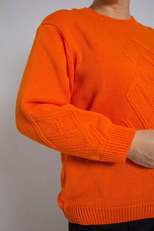 Базовый женский джемпер, связанный красивым переплетением. Джемпер умеренного объема, средней длины, с длинными рукавами рубашечного покроя, с фигурным вырезом горловины. Стильный и модный, этот однотонный джемпер подойдет как для повседневного использования, так и для офисного образа, гармонично дополняя ваш гардероб.