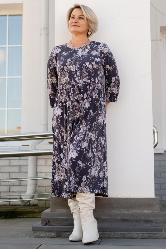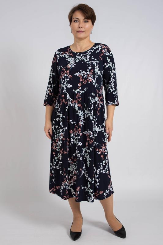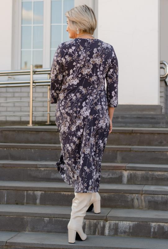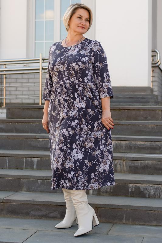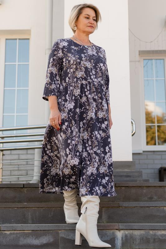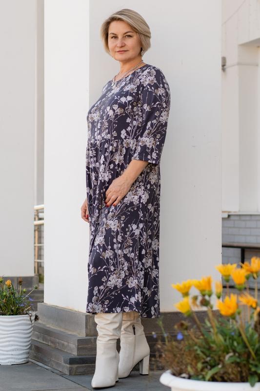 Платье женское свободного силуэта, отрезное по талии из трикотажного полотна. Рукава втачные 34 длины. Горловина округлой формы. Платье станет прекрасным выбором как на каждый день, так и для праздника, романтического свидания или вечернего выхода в свет.