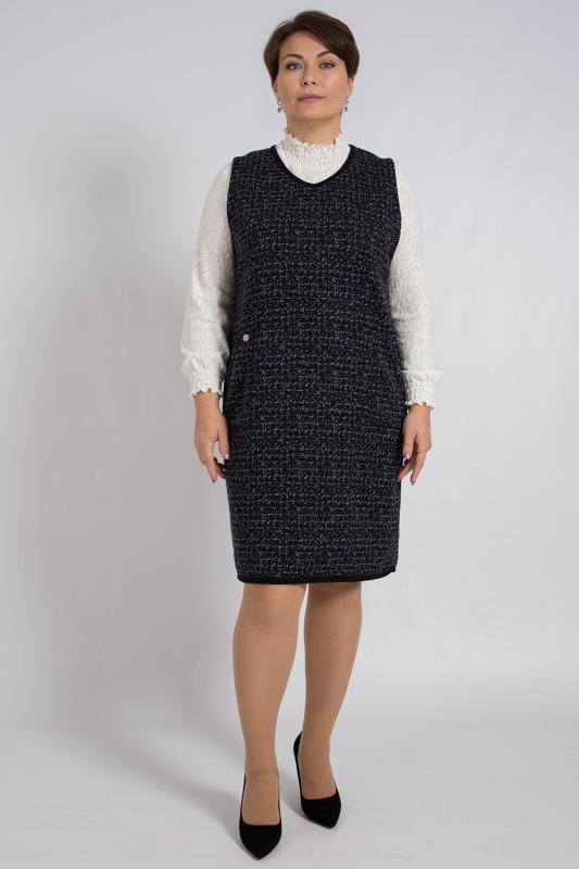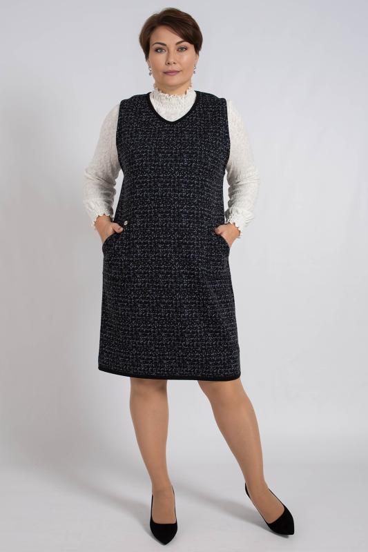 Сарафан свободного кроя без рукавов и с V- горловиной. Для удобства два внутренних кармана . Выполнено жаккардовым структурным переплетением рисунок клетка. Прекрасно подойдет для офисного, повседневного и делового стиля.