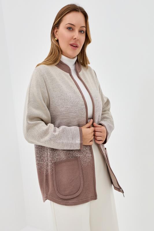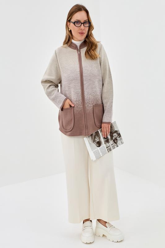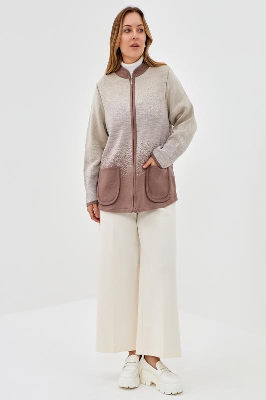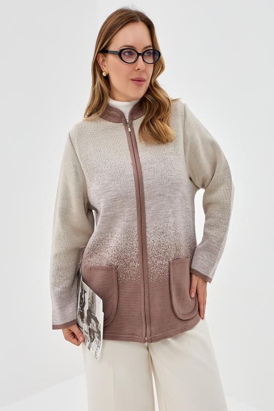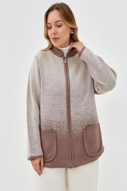 Жакет на молнии с накладными карманами. Горловина со стойкой. Нежный мягкий переход цвета.