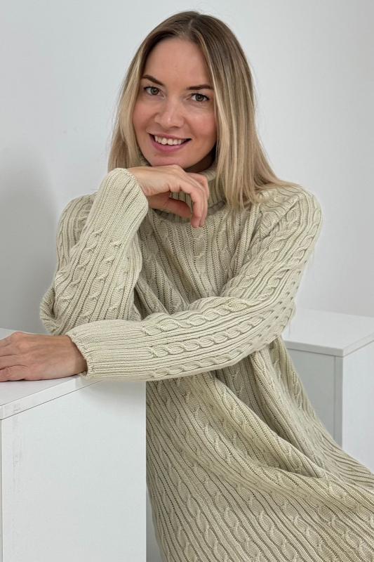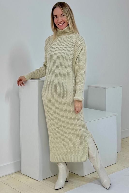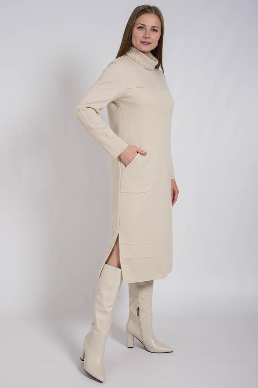 Платье женское вязаное — стильная, уютная и универсальная модель сезона осень-зима . Выполненное из мягкого плотного трикотажа , оно приятно прилегает к коже, не колется и прекрасно сохраняет тепло даже в самые холодные дни. Свободный прямой крой с длинными рукавами и теплым воротником создает комфортный выигрышный силуэт, не стесняет движения и дарит ощущение уюта каждый день. Благодаря эластичной фактуре вязки материал деликатно подчёркивает фигуру, визуально вытягивает силуэт и скрывает возможные недостатки, а длина миди делает образ современным, стильным и сбалансированным.