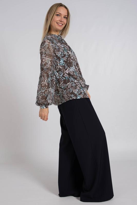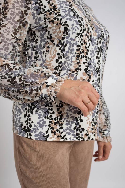 Нарядная блузка с длинным рукавом выполнена из ткани масло с шифоном, что придает ей легкости и воздушности. Идеально подойдет для повседневной носки, а также для особых случаев, вечерних мероприятий и праздников.