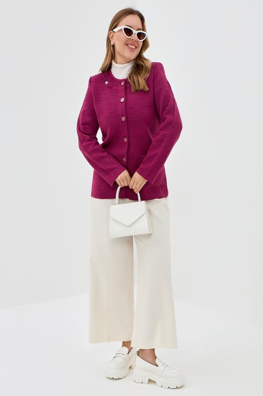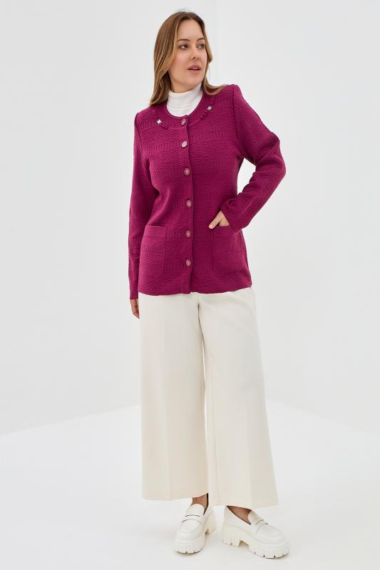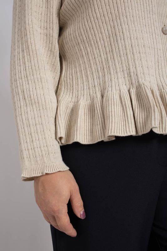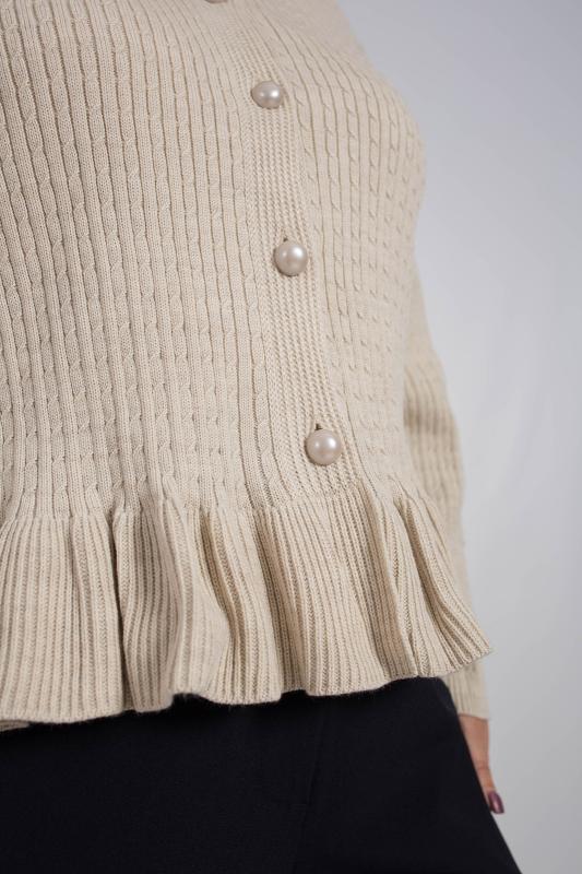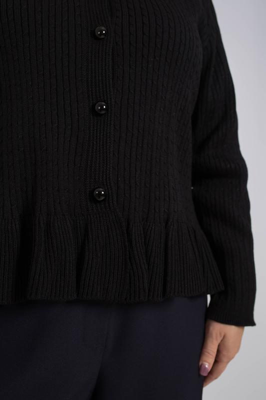 Стильный и нарядный кардиган с баской станет идеальным дополнением к вашему осеннему гардеробу. Он подарит вам комфорт и тепло в прохладные дни. Приталенный крой и удлиненный рукав подчеркивает женственные формы, делая образ элегантным и утонченным. Кардиган с баской универсален и подходит как для вечерних выходов, праздника, так и для повседневной носки. Он прекрасно дополнит ваш образ на работе, учебе, в ресторане или на прогулке. Декоративные пуговицы добавляют модели изюминку, а отсутствие воротника придает ему легкую небрежность. Благодаря своей универсальности и стильному дизайну, эта кофта станет любимой вещью в вашем гардеробе. Этот жакет отражает главные тенденции — эстетику олд мани, винтажные мотивы и уютный стиль. Добавьте в образ украшения в том же стиле, чтобы подчеркнуть его уникальность.