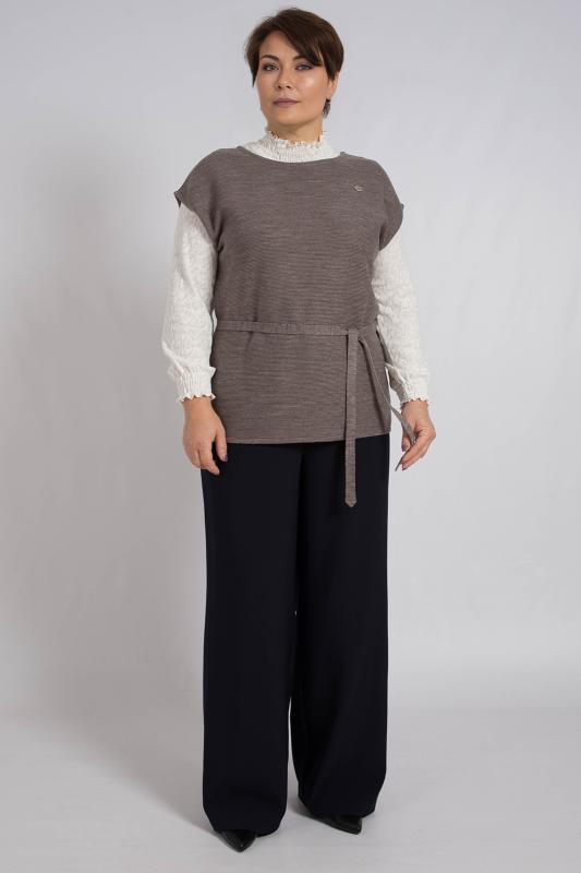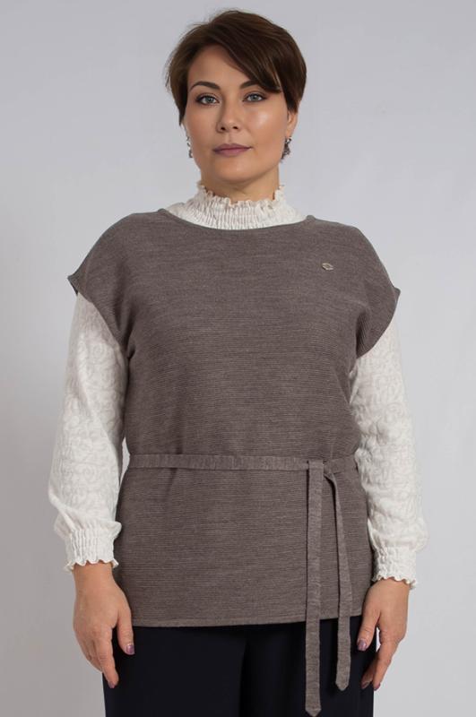 Джемпер женский из трикотажного полотна с шифоновыми рукавами. Рукава втачные длинные на манжете. По низу изделия притачной пояс. По центру полки планка и декоративная щель. Этот джемпер незаменимый и универсальный элемент каждого гардероба. Подойдет для повседневной носки, для прогулок и на праздник.