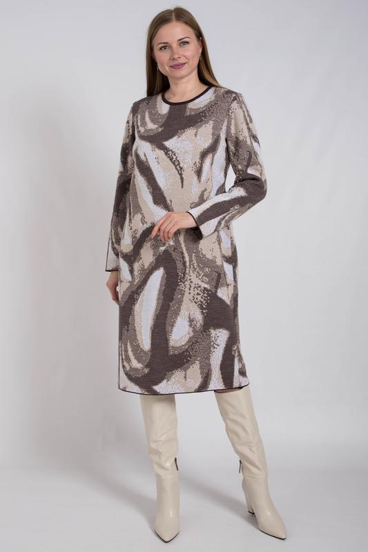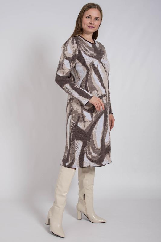 Представляем новинку - стильное трикотажное платье идеальное на зиму и осень. Прямой крой создает женственный образ на каждый день. Горловина круглая. Особую изюминку придает модный мраморный прин. Короткая длина и лаконичный дизайн делают его универсальным и уместным как в офисе, так и в повседневной жизни. Платье чуть ниже колен станет отличным выбором для тех девушек, которые ценят комфорт и практичность.