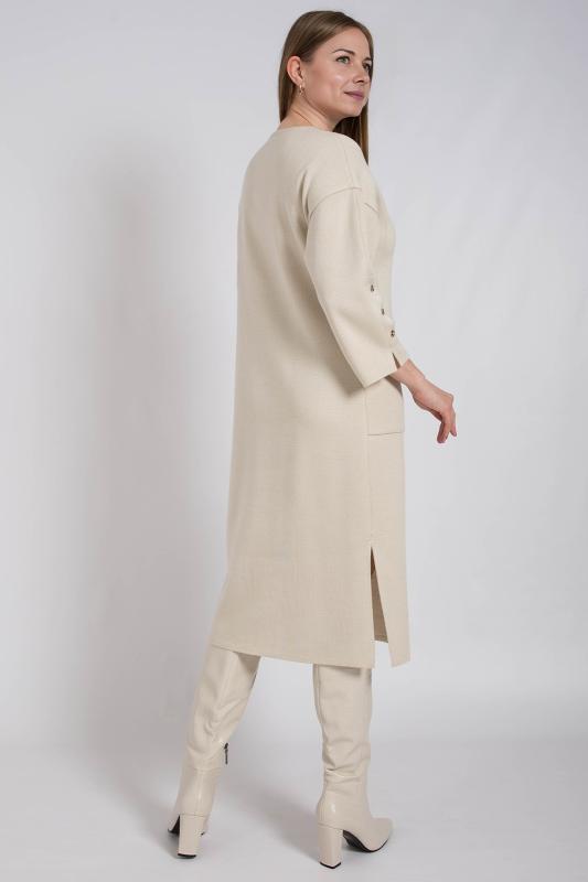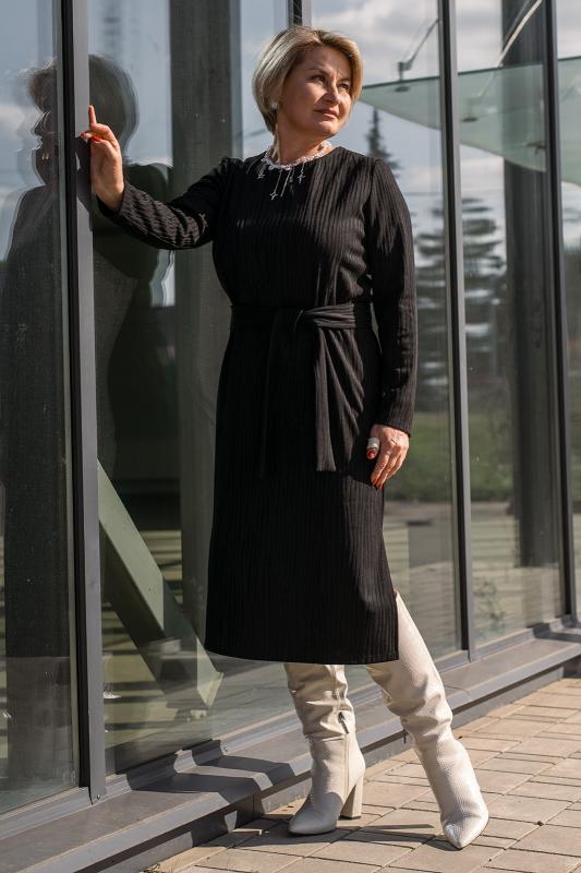 Платье женское вязаное — стильная, уютная и универсальная модель сезона осень-зима . Выполненное из мягкого плотного трикотажа , оно приятно прилегает к коже, не колется и прекрасно сохраняет тепло даже в самые холодные дни. Свободный прямой крой с длинными рукавами 3-4 создает комфортный выигрышный силуэт, не стесняет движения и дарит ощущение уюта каждый день. Благодаря эластичной фактуре вязки материал деликатно подчёркивает фигуру, визуально вытягивает силуэт и скрывает возможные недостатки, а длина миди делает образ современным, стильным и сбалансированным.