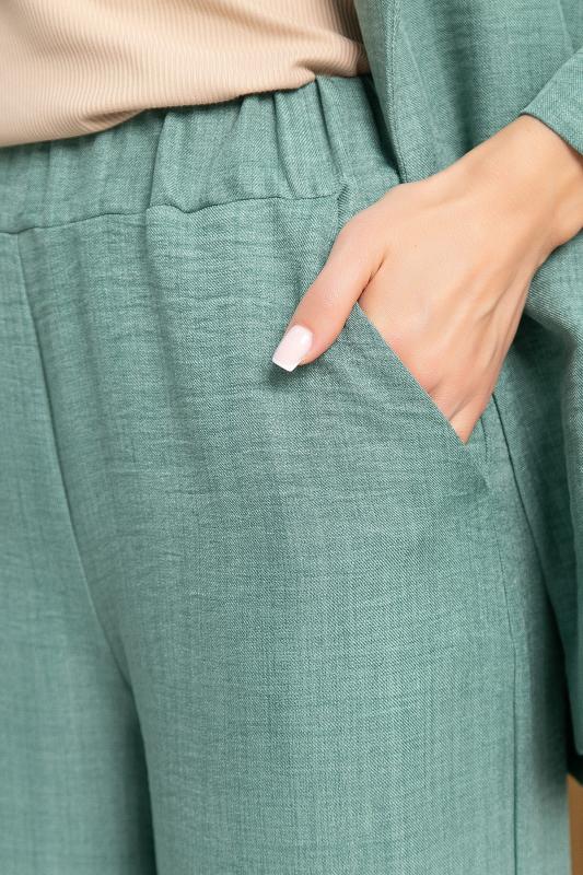 Состав: 50% лён, 30% вискоза, 17% полиэстер, 3% эластан. Материал: смесовый лён. Цвет: мятный. Принт: отсутствует Силуэт: свободный. Карманы: есть. Резинка в поясе: есть. Вид застежки: верх по талии на кулиске, брюки по талии на резинке. Декоративные элементы: отсутствуют. Длина верха: 44- 72 см, 46- 73 см, 48- 74 см, 50- 75 см, 52- 76 см, 54- 77 см. Длина брюк: 44- 101 см, 46-50- 106 см, 52-54- 107 см. Костюм отснят с топом арт.Б13054-33М Представляем вам женский льняной костюм в мятном оттенке — идеальный выбор для жарких летних дней! Пиджак с кулиской на талии позволяет подчеркнуть вашу фигуру, а брюки с резинкой по талии обеспечат удобную посадку. Этот костюм станет вашим незаменимым помощником в любых путешествиях и приключениях. Уход за изделием: ручная стирка до 30 градусов