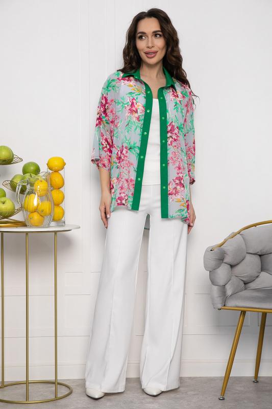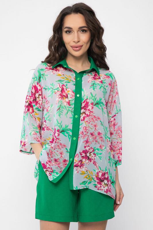 Костюм отснят с белыми брюками Б12685-13 Погрузитесь в атмосферу лета с нашим стильным костюмом, включающим рубашку и шорты. Рубашка с рукавом 3-4 выполнена из легкого шифона и украшена ярким цветочным принтом, который добавит вашему образу свежести и яркости. Свободный крой обеспечивают комфорт и легкость в носке. Шорты выполнены из натурального льна, что делает их идеальными для жарких дней. Они имеют удобную резинку на поясе и карманы, что добавляет практичности. Длина шорт выше колена, а свободный силуэт обеспечивает свободу движений. Этот костюм станет отличным выбором для прогулок, пикников и летних мероприятий. Создайте стильный образ, сочетая его с легкими сандалиями или кроссовками!