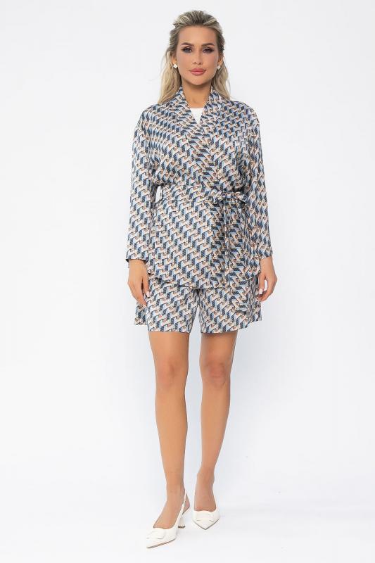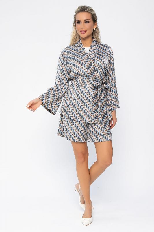 Представляем вашему вниманию комплект, состоящий из двух элементов: пиджака-кимоно и шорт. Этот комплект в разноцветном цвете — воплощение лёгкости, комфорта и современного шика. 1. Пиджак-кимоно свободного кроя. Горловина украшена аккуратной планкой. Рукава широкие и свободные, не сковывают движения. 2. Шорты на талии на резинке, что обеспечивает идеальную посадку. Карманы расположены по бокам. Пояс из основной ткани входит в комплект и позволяет подчеркнуть талию или создать расслабленный образ без него. Этот комплект идеально подходит для тёплых дней, путешествий или повседневных прогулок, подчёркивая ваш стиль.