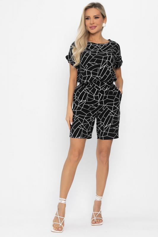 Артикул: К5903. Ткань: хлопок. Состав: 100% хлопок. Цвет: белый, чёрный. Вид застежки: на рубашке - пуговицы, на шортах - отсутствует. Силуэт: свободный. Карманы: есть. Длина изделия рубашка по спинке: 44-46- 74 см, 48-50- 76 см, 52- 78 см. Длина шорт с учётом резинки: 44-46- 35 см, 48 -36 см, 50-52- 37 см. Рост модели: 168 см. Функциональное и лаконичное изделие обладает привлекательным дизайном и оригинальным оформлением, большим потенциалом и корректирующими способностями. Изделие универсально и будет отлично сочетаться с любым элементом Вашего гардероба. Шорты отлично смотрятся с топами, а рубашка с джинсами. Спинка рубашки удлинена. Рукав длинный, со спущенным плечевым швом. Шорты короткие, талия на резинке. Уход за изделием: бережная стирка до 30 градусов