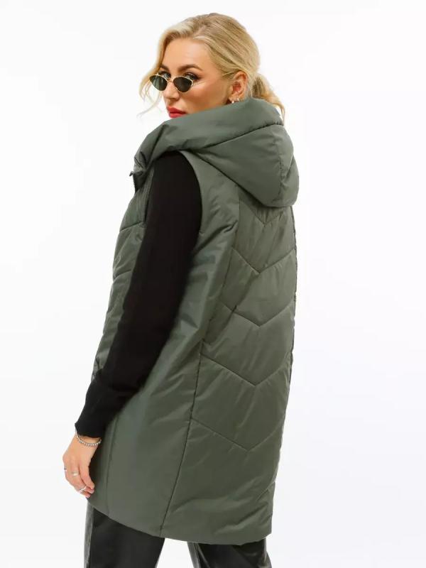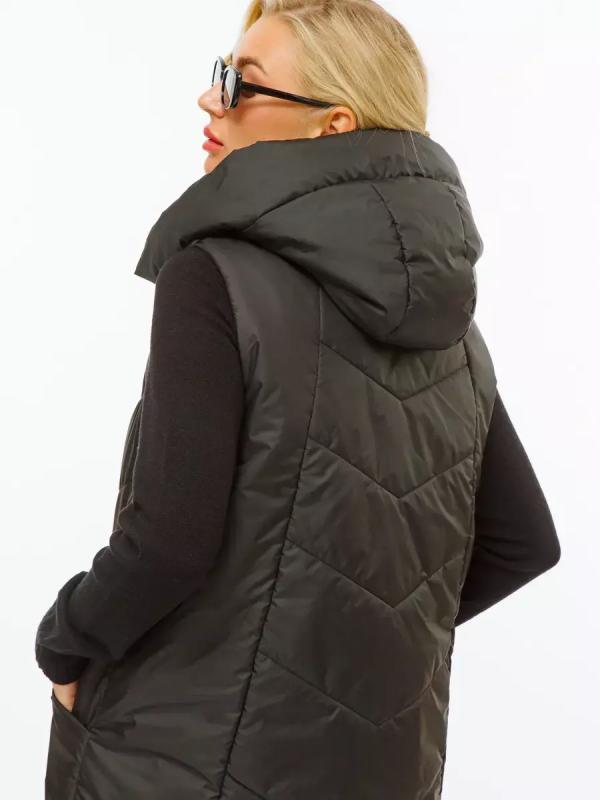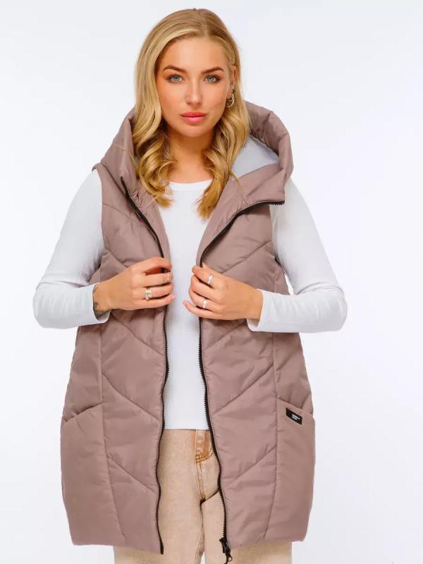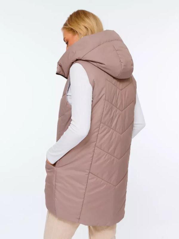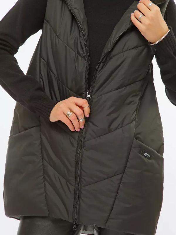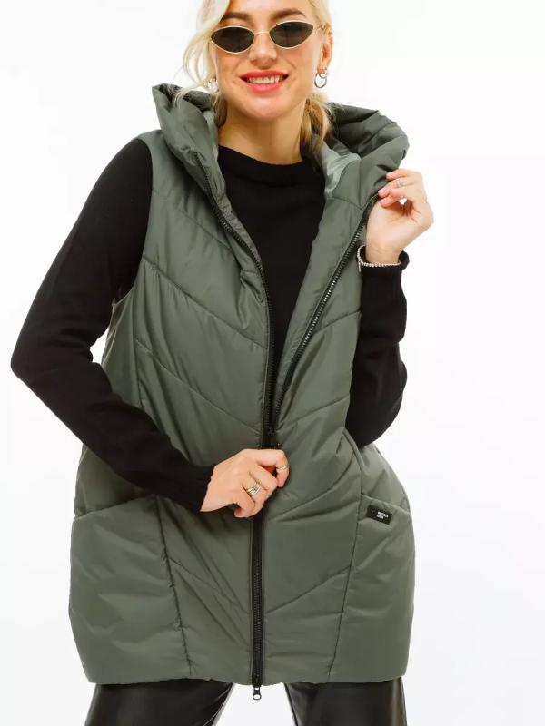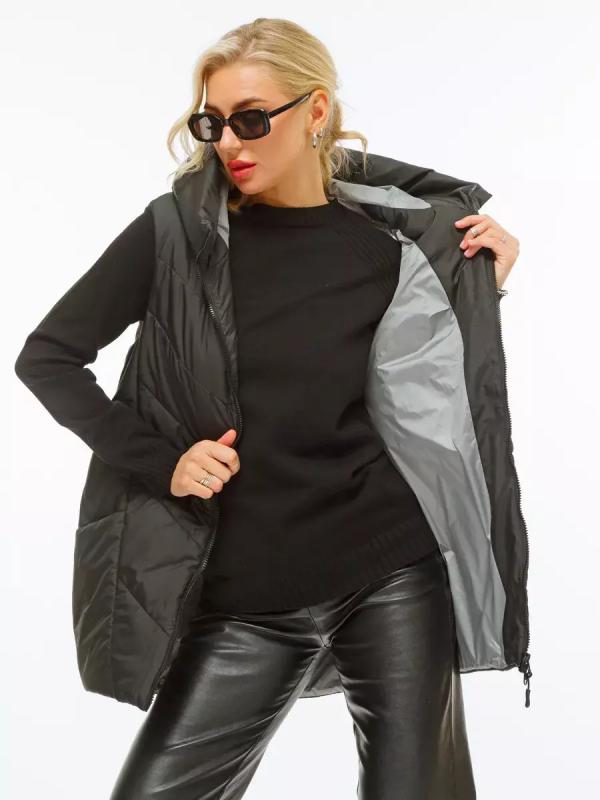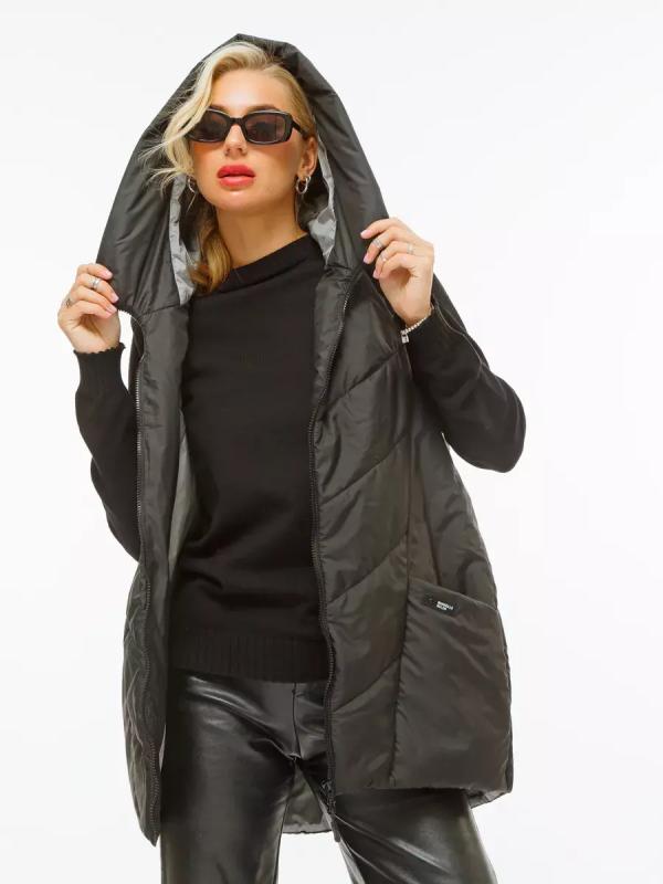 Тёплый жилет прямого кроя с удлинённой линией бедра и объёмным капюшоном. Стёганая текстура, комфортная посадка и лаконичный фасон. Прорезные карманы на молнии. Универсальная модель для повседневных образов — легко сочетается с трикотажем, брюками, джинсами и костюмами.