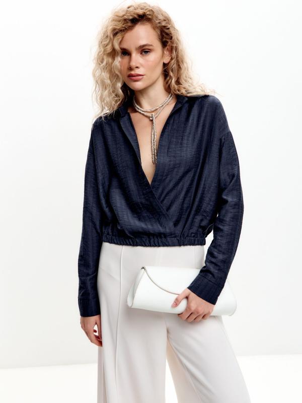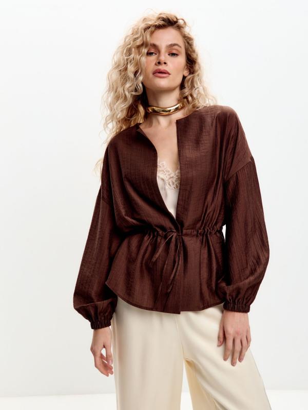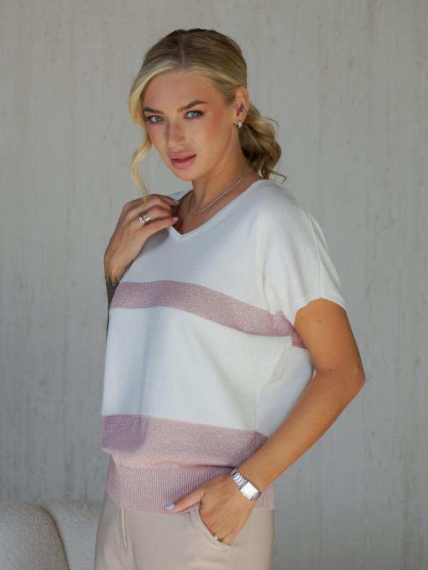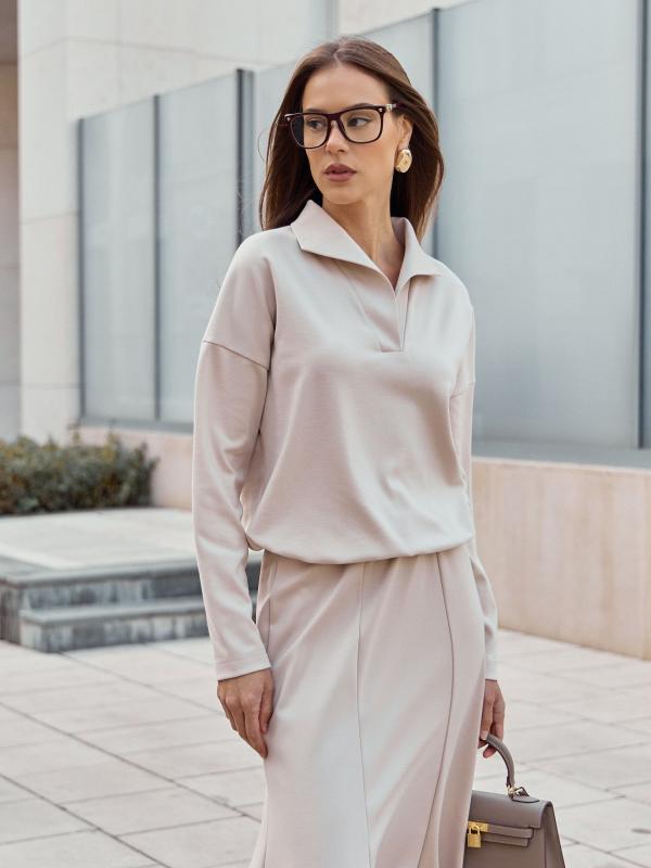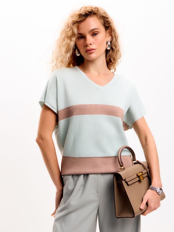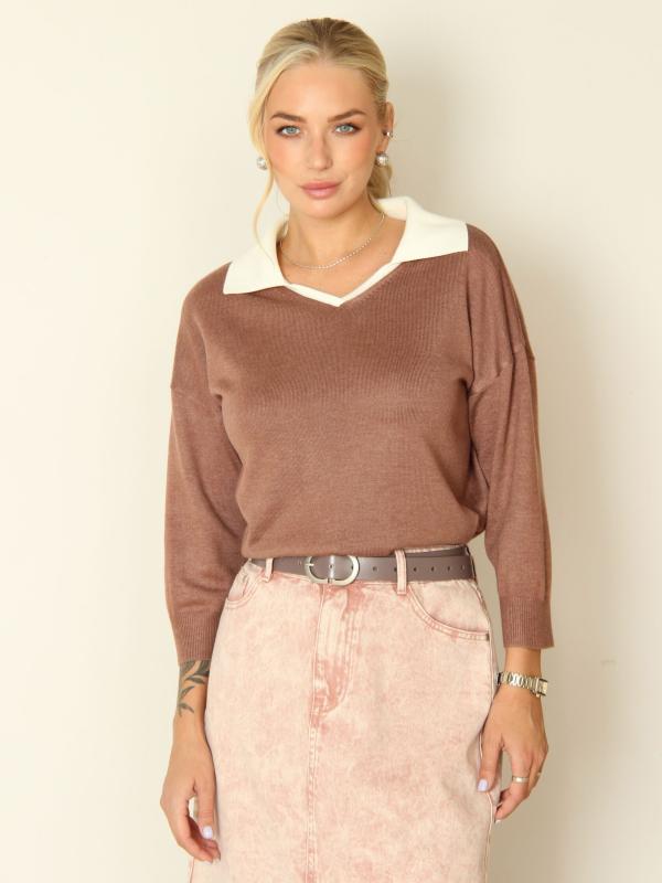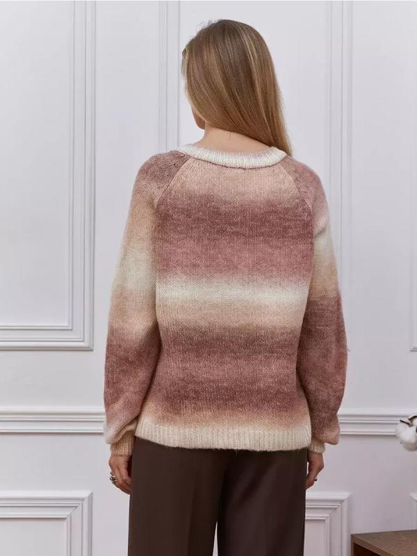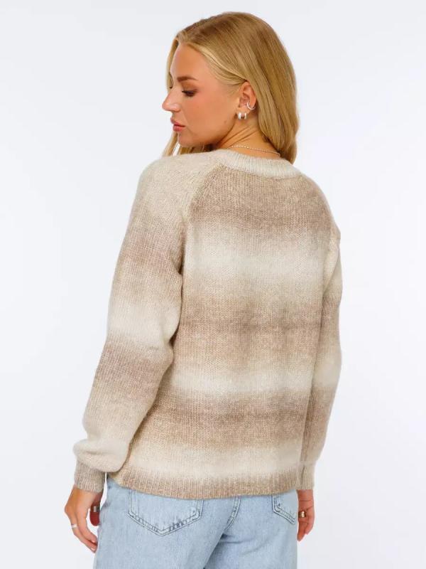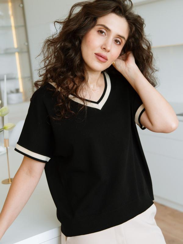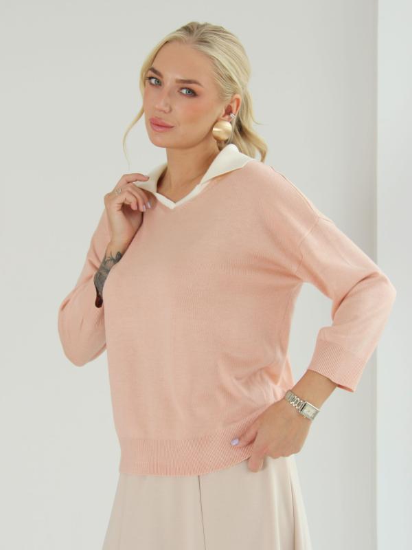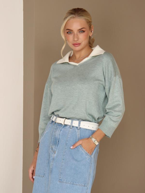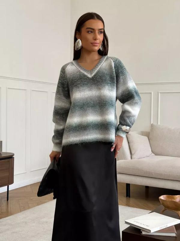 Джемпер свободного силуэта с объёмными рукавами-реглан и фактурной вязкой. V-образный вырез подчёркивает линию шеи и добавляет образу лёгкости. Эластичная отделка по краям создаёт аккуратный силуэт. Идеален для многослойных сочетаний — с брюками, юбками и поверх рубашек.