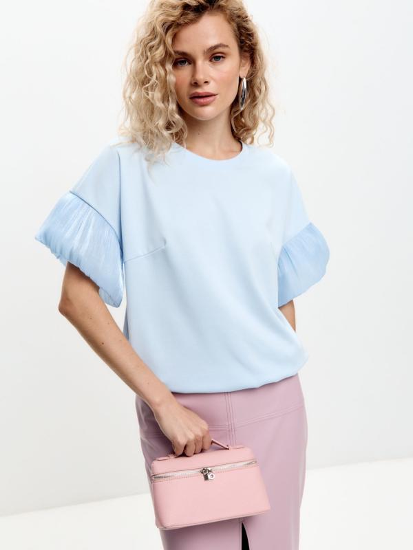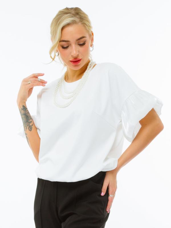 Легкая блузка простого кроя, которая отлично впишется в любой стиль и в любой гардероб. Изделие имеет спущенное плечо, которое прикрывает зону подмышечной впадины. Горловина простой О-образной формы обработана обтачкой! Блуза может составить любой ансамбль, поэтому такое изделие является базовой вещью.