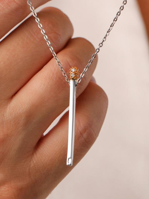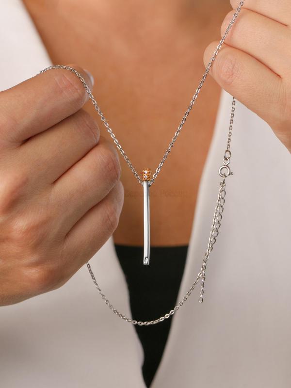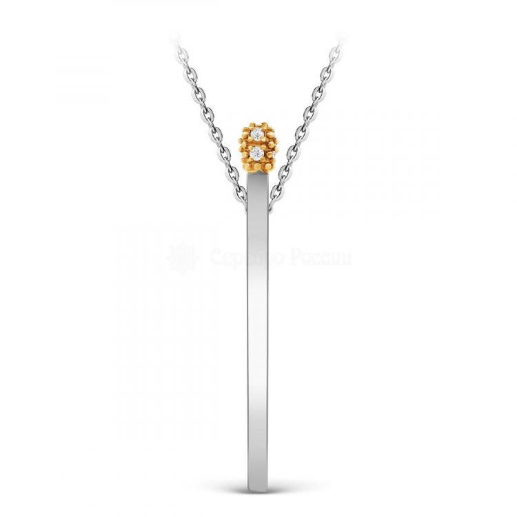 Колье из серебра с фианитами и позолотой родированное - Спичка 925 пробы пк-06рз200