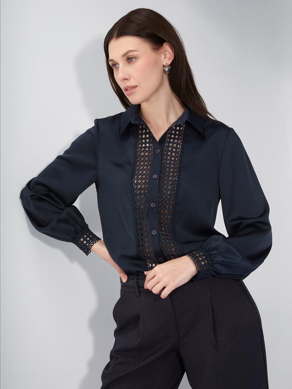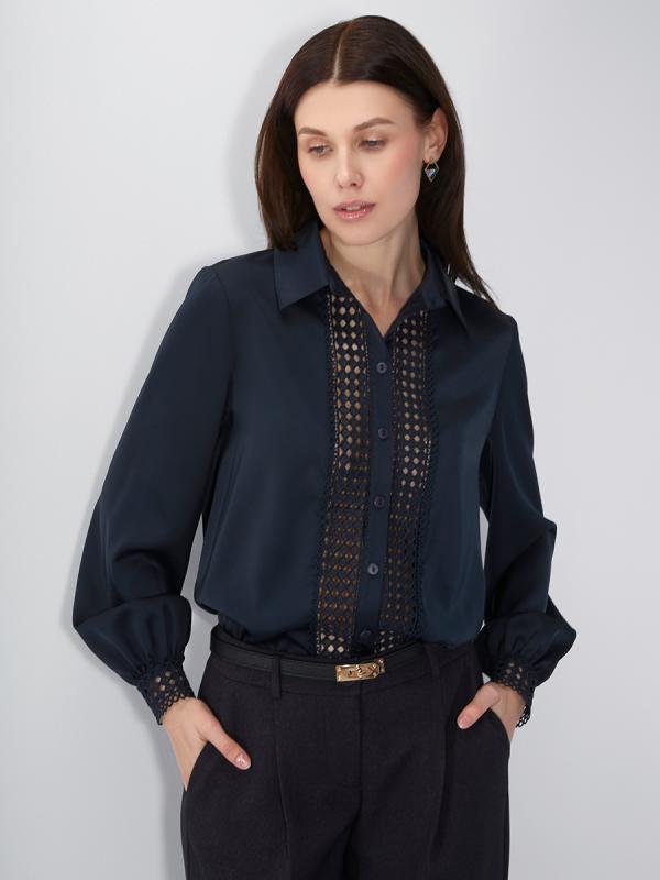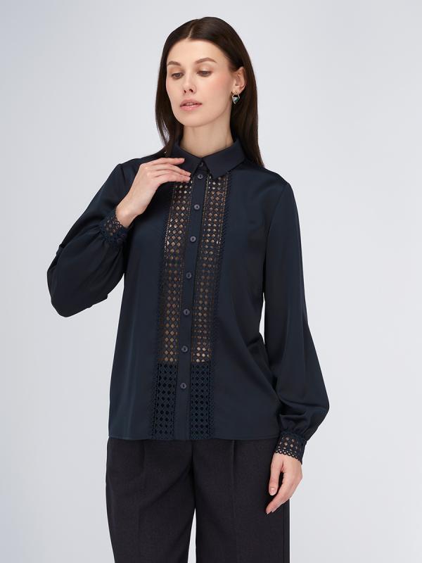 Блузка с кружевом OD-808-4 темно-синий