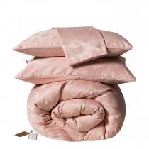 Состав: Сатин: 70% хлопок, 30% пэ | Жаккард: 70% вискоза, 30% пэ. Плотность: 130 гр./м² Пододеяльник: 180*215 см 1 шт Простынь: 180*200*25 см 1 шт Наволочка: 50*70 2 шт Пододеяльник и наволочки на молнии, что значительно облегчит заправку одеяла и подушек. Наволочки с разных сторон разной ткани: верх - жаккард, низ - сатин Пододеяльник с разных сторон разной ткани: верх - жаккард, низ-сатин Простыня сатин однотонный такого же цвета и ткани, как низ пододеяльника. Метод окрашивания: Гладкокрашенный Размер упаковки комплекта 40*30*8 см.