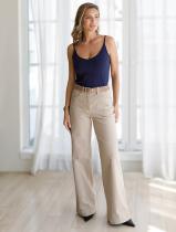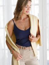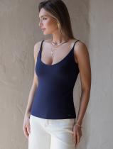 Топ с V-вырезом выполнен из премиального хлопка. Модель дополнена регулируемыми бретелями, позволяющими носить изделие на нужном уровне. Эластичный материал гарантирует комфорт и формоустойчивость. Из украшений металлический логотип бренда.