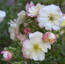 Цветки махровые, сливочные-белые с розовой окантовкой, крупные, диаметром 5см.