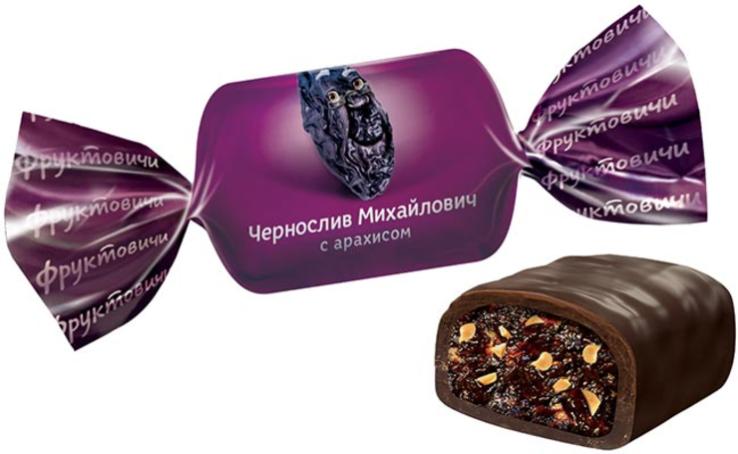 «Фруктовичи», конфеты «Чернослив Михайлович» с арахисом в темной глазури (упаковка 0,5 кг)