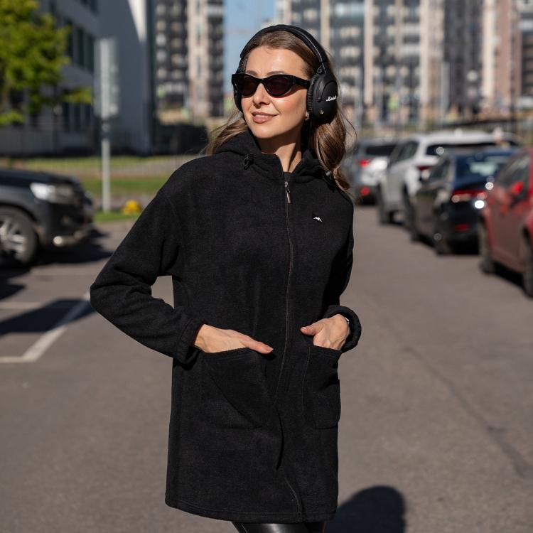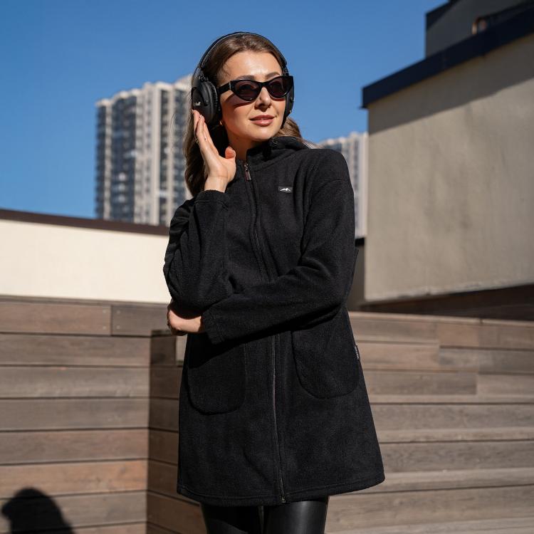 Женская удлиненная толстовка на молнии, с капюшоном и накладными карманами.Материал:
