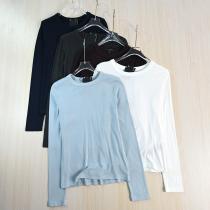 ЭКСПОРТ Женская Мягкая эластичная футболка из смесового хлопка с круглым вырезом и тонкой основой с длинным рукавом