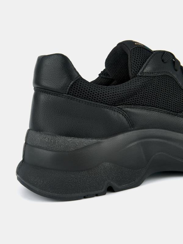 Кроссовки мужские GREY черного цвета. Верх из натуральной кожи и сетчатого текстиля легкий и прочный. Шнуровка регулирует посадку. Мягкий верхний край и высокий задник отлично фиксируют щиколотку. Подкладка из текстиля и кожи позволяет ногам дышать. Двухслойные стельки созданы специально для активной жизни: верхний слой из полиэстера дышит и отводит влагу, основа из антибактериального материала Polisport смягчает удары при ходьбе, чтобы ваши ноги не уставали. Подошва из полиуретана прочная и хорошо амортизирует, литьевой способ крепления подошвы делает модель долговечной. Трендовый силуэт смотрится актуально, носите черные кроссовки с с джинсами и костюмами в стиле casual, а также в более спортивных сочетаниях с брюками и худи.