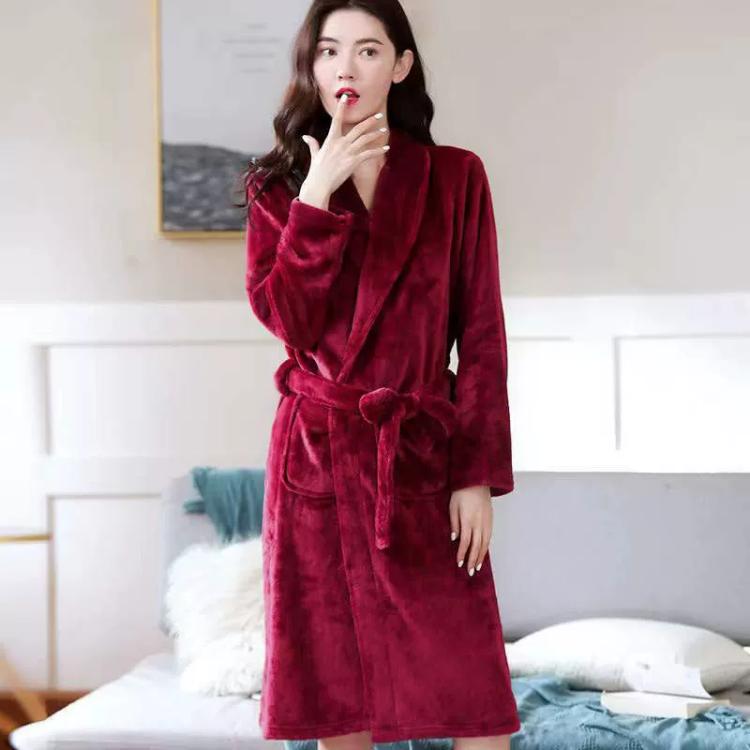 ЭКСПОРТ Халат женский из утолщенного фланелевого флиса, коралловый бархатный халат, домашняя одежда