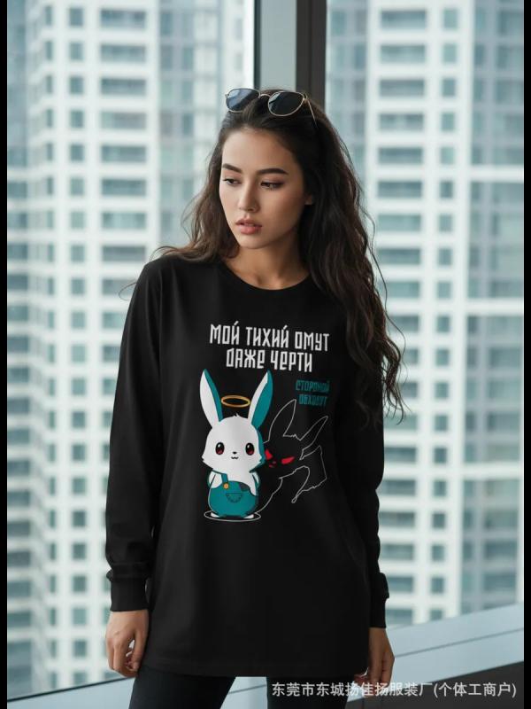 Футболка женская, Футболка с длинным рукавом, лонг, "мой тихий омут"