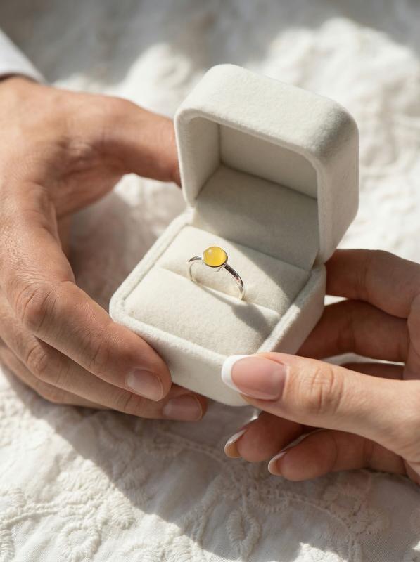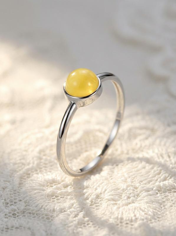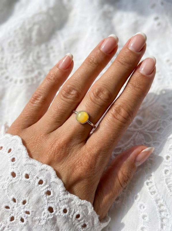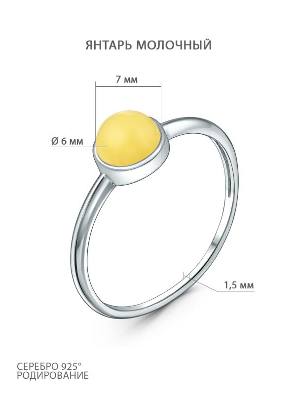 Кольцо из серебра с молочным янтарём родированное 1-412р640